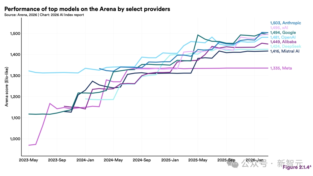 中美AI模型性能差距已基本消失,双方在巅峰对决中频繁易主,目前Anthropic领先优势仅剩2.7%。