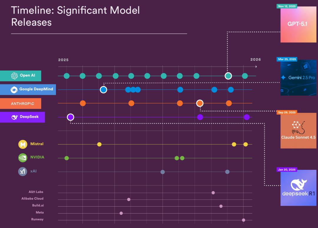 2025年美国发布了50个「显著模型」,中国紧跟着也发布了30个顶尖大模型。
