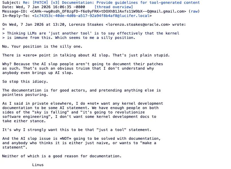 因此,这套新政策的执行,并不依赖抓住每一个违规者,而是通过提高违规代价,来约束行为。问问那些曾因为提交劣质补丁而被 Torvalds 当面“教育”的人就知道了。虽然他现在已经比过去温和不少,但你依然不会想站在他的对立面。