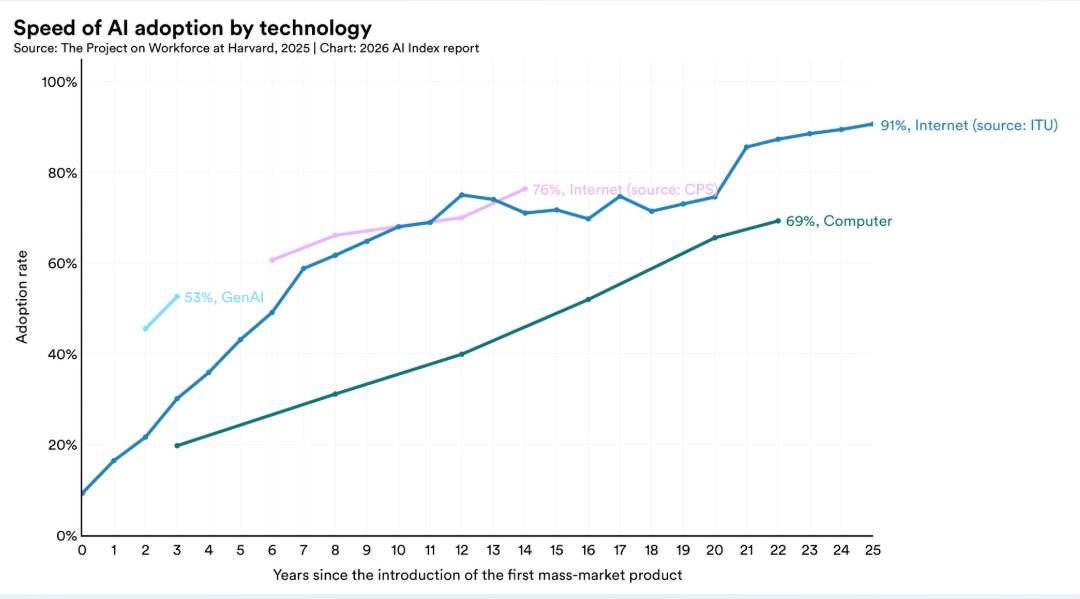 AI普及率正在历史性加速。
