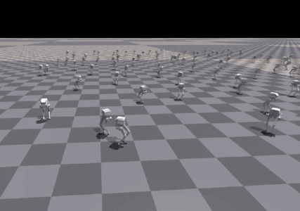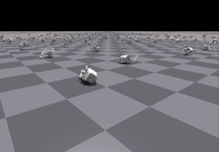 创建一个 Isaac Gym 仿真环境,在这里,你可以一次性拉出成千上万个一模一样的机器人,让它们同时摔、同时犯错,快速成长,训练效率直线提升。