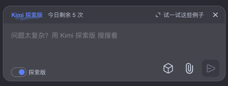 Kimi探索版现已全量上线,使用方式很简单,不需要切换模型,入口就在Kimi的对话框底部的开关里,打开“探索版”开关即可开始使用。