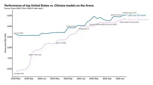 同一天,斯坦福HAI发布2026 AI Index报告,数据显示中美最强模型的性能差距只剩2.7%。