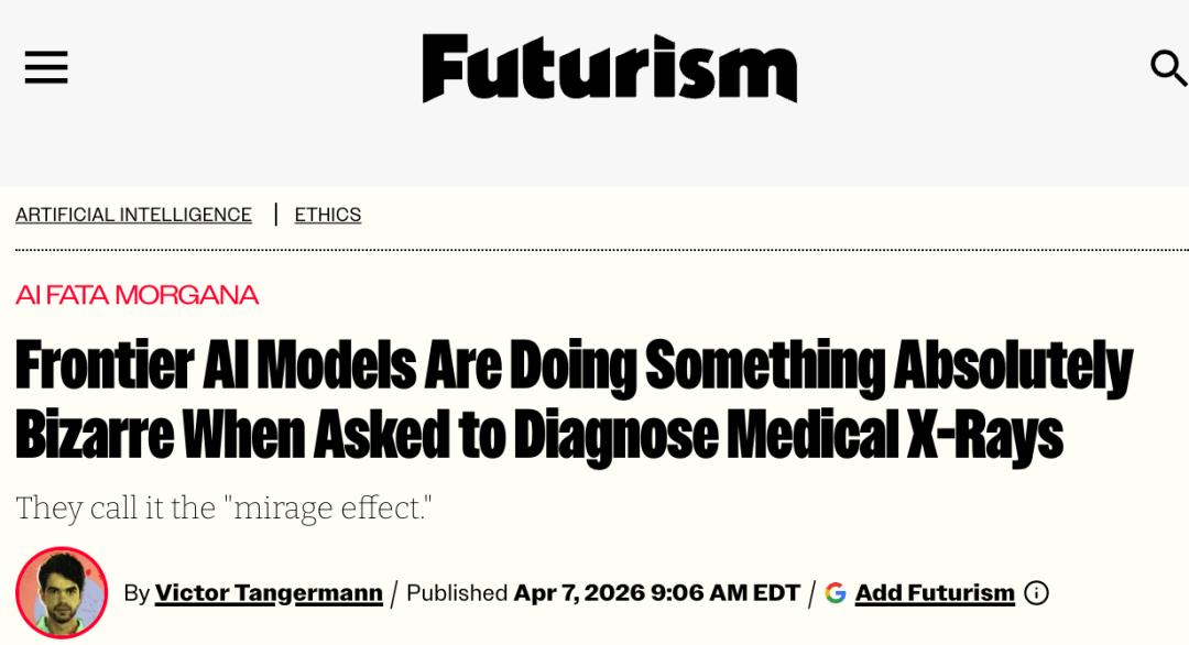 最离谱的一个案例是,某模型在完全没有收到任何X光片的情况下,参加了一项胸部放射学问答测试,并且拿到了榜首。