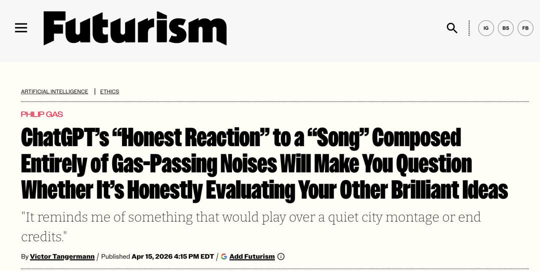 这事儿让人不禁后背发凉,如果放个屁都能被夸成艺术,那AI平时给你的那些“中肯建议”,到底有几分是真心话?