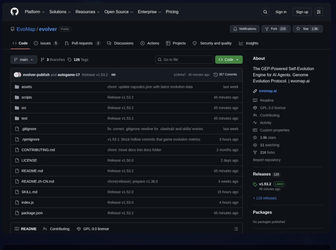 EvoMap列出的基于GitHub仓库元数据和官方发布记录