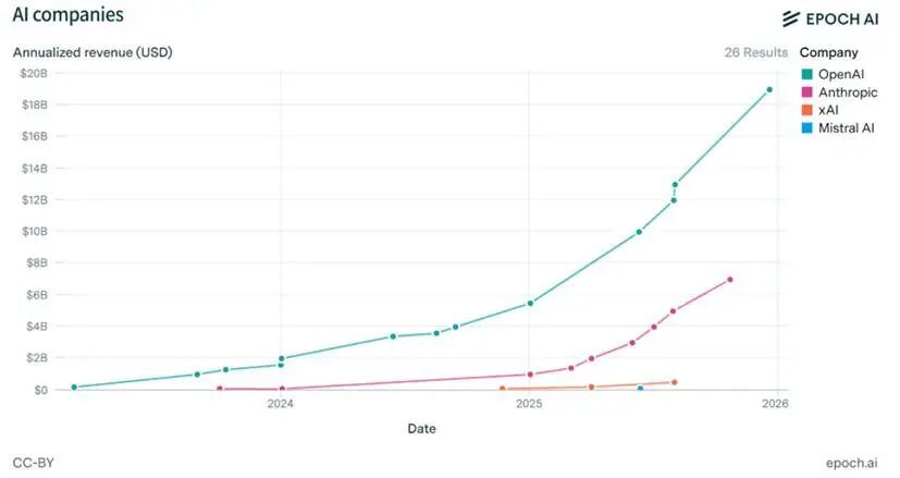 紧随其后的是OpenAI,也开始把企业级市场作为核心增量来源:25年收入占比达到40%,今年有望继续提升到60%。