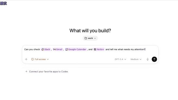 在最后两个视频的演示里,OpenAI则是打算让Codex变成你的“私人助理”。视频中用户仅用一句话,就让Codex同时检索了Slack、Gmail、Google Calendar和Notion等四个截然不同的SaaS平台。