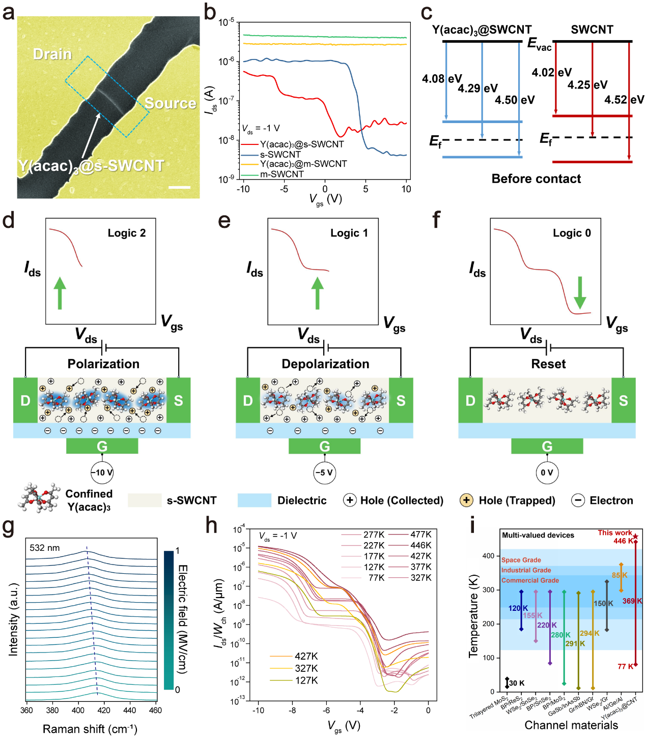 图2 Y(acac)3@s-SWCNT异质结构实现ternary逻辑功能的物理机制