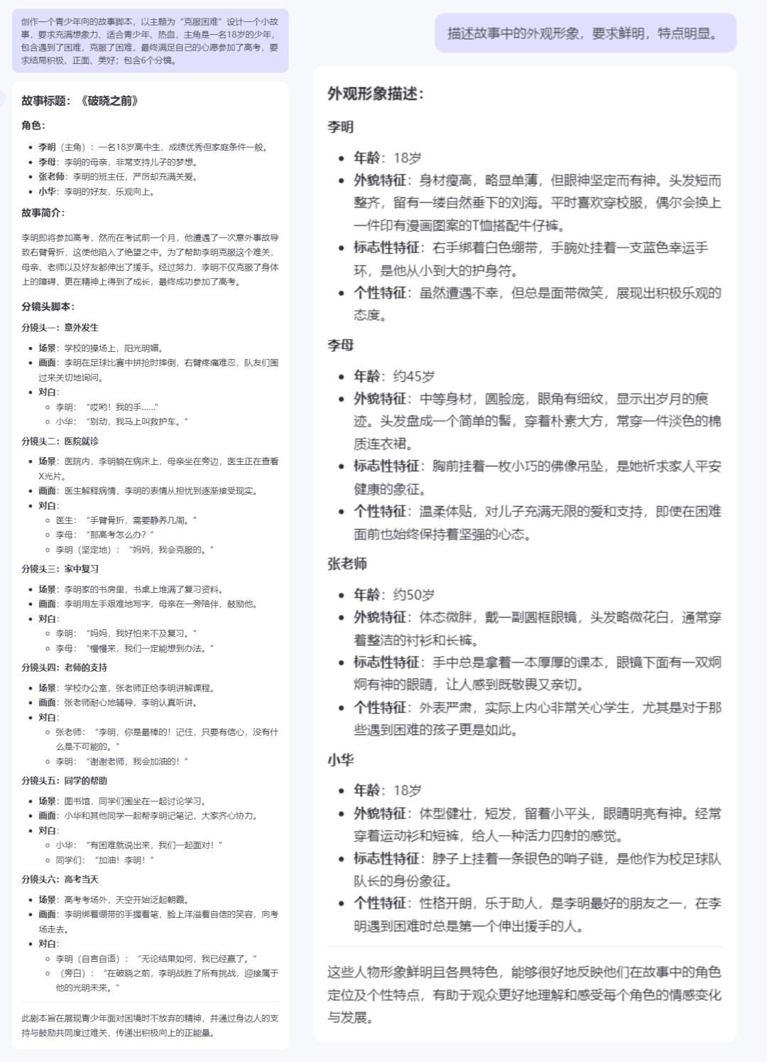 通义千问生成的剧本分镜和人设,参数见图