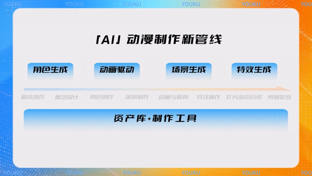 优酷动漫则引入了AI动漫创作的整条管线,为平台内已有的动画创作者提供全方位的AI支持,与国际接轨推动AI技术融入生产一线提升效率。根据优酷AI动漫制作新管线的构思,在未来,剧本创作、概念设计等阶段可以通过文字AI大模型协助完成;角色创作、场景制作则能结合图片AI大模型参与其中;在传统动画工业领域里的动画解算、特效制作、灯光渲染合成等工序,也有厂商进行了AI插件的设计,进一步提升了动画制作的效率;而剪辑配音环节,随着AI剪辑工具的陆续面世,以及AI配音工具的完善,让剪辑变得更为便捷。传统动画制作的厂商,也能获得AIGC带来加速原本动画制作流程的红利。