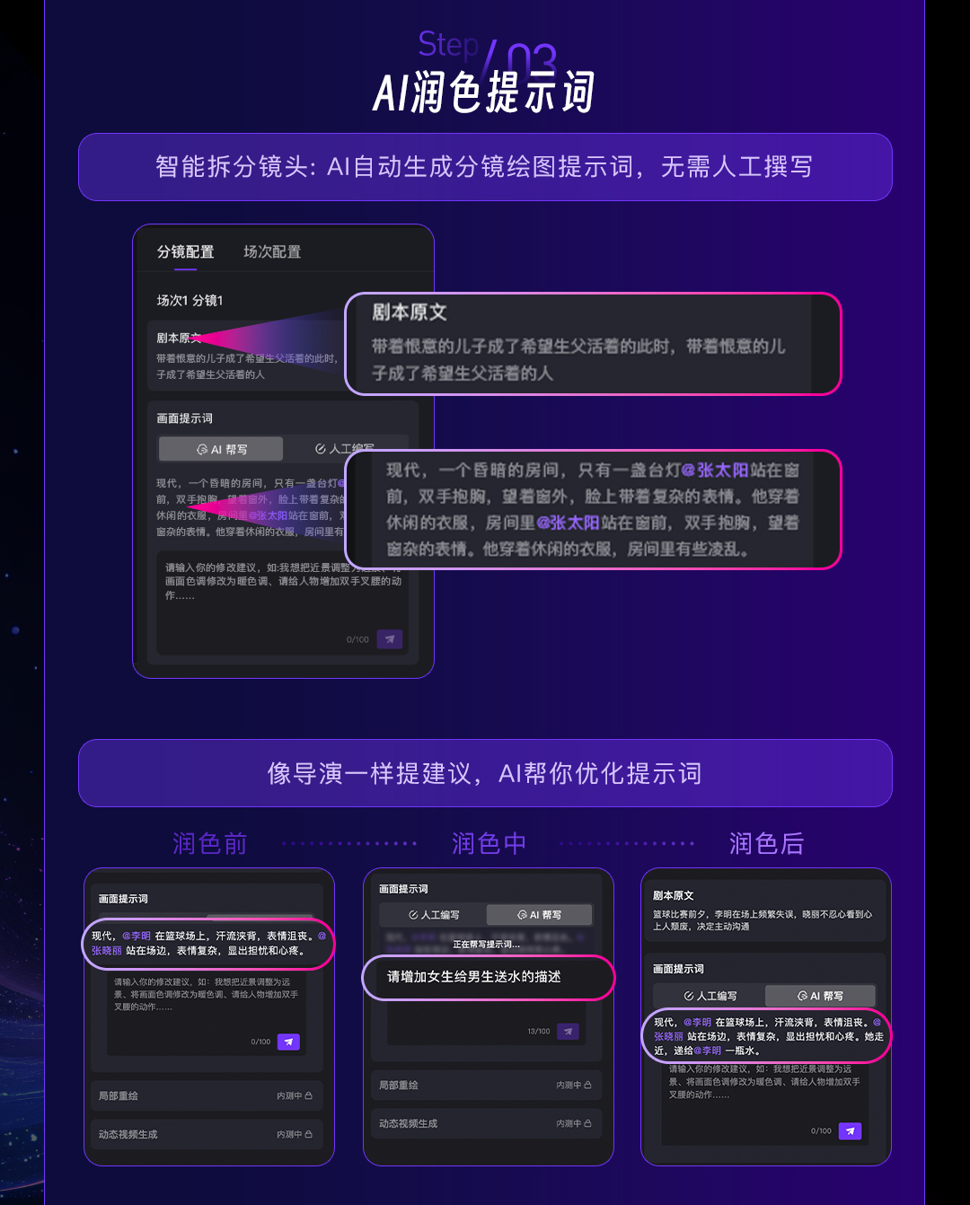 深响:感觉像剧本那个制片、管理这种大的环节,其实都有对应的 AI 的产品了,神笔马良选中了剧本转分镜这样一个特别垂直的切入点,您觉得接下来想再入局,垂直细分是不是就是接下来影视AI的一个趋势了?