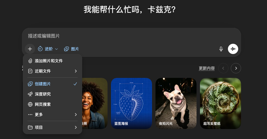 现在在ChatGPT中直接用创建图片,就可以直接触发。