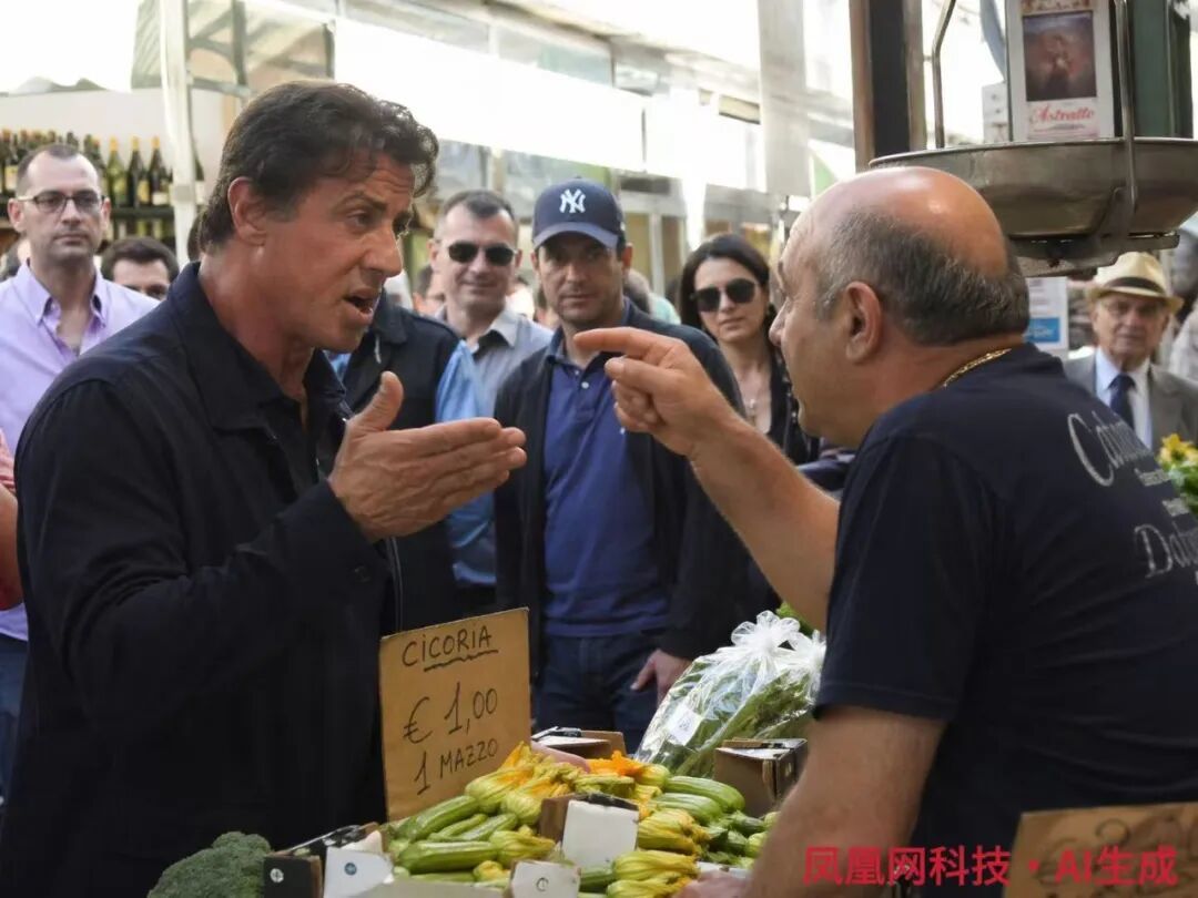 提示词:生成一张实拍画面,国外知名演员在菜市场买菜砍价,跟人吵起来