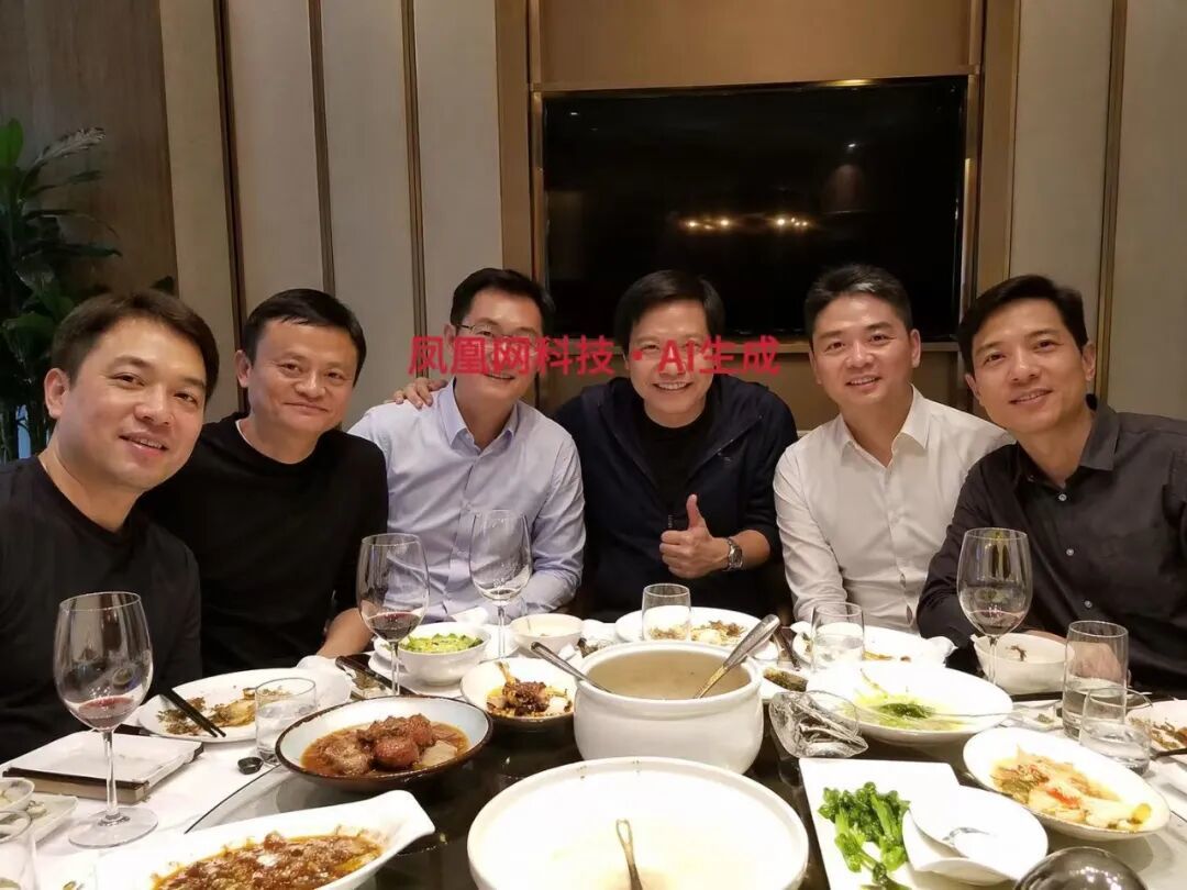 这里的提示词是:生成一张几个科技大佬线下团建吃饭的照片,要有正脸。
