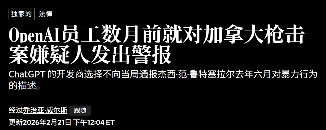 【新智元导读】OpenAI CEO Sam Altman 向加拿大小镇 Tumbler Ridge 道歉:公司曾封禁枪击案嫌疑人的 ChatGPT 账号,却未向警方预警。事件造成 8 人死亡,也把 AI 平台的风险识别、执法转介和未成年人监管推到台前。