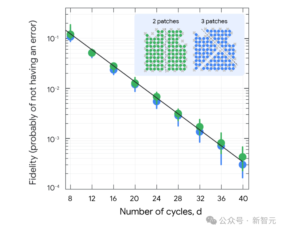 谷歌最新的结果显示,电路体积(circuit volume)不仅成功地翻了一番,而且保真度也与 2019 年的演示相当。