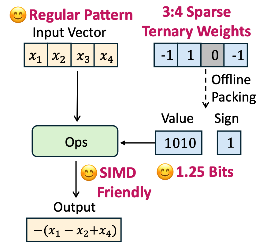 Sherry 压缩方案的核心逻辑在于“细粒度稀疏”策略:每 4 个模型参数,3 个最重要的用 1-bit 储存,1 个用 0 储存,平均每个参数仅需 1.25-bit。
