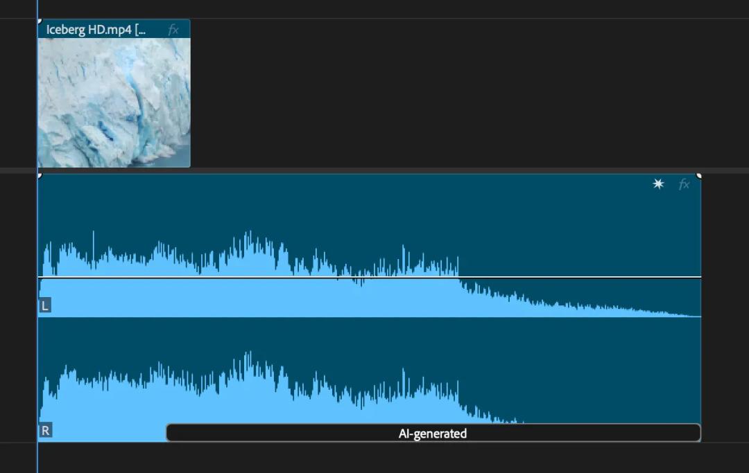 下面这个示例就展示了,在只有音效但没有画面的情况下,如何使用生成式扩展功能,自动延长各个镜头画面的停留时间,在匹配音效的同时补好时间轴上的大窟窿。