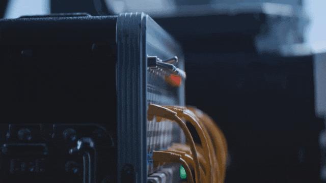 提示:一只戴着手套的宇航员的手进入画面,拔掉了黄色电缆的其中一根。电影感。