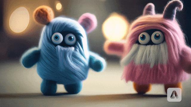 提示:用羊毛和毛毡制成的微型可爱怪物,在一起跳舞,3D渲染,Octane引擎,柔和的灯光,梦幻的虚化,富有电影质感。