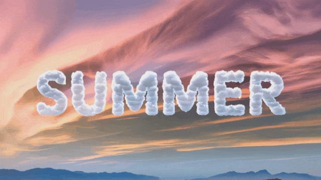 提示:「SUMMER」一词由蓬松、彩虹色的云朵组成,漂浮在美丽山脉上方的有漩涡和柔和色彩的天空中,两秒钟后,「SUMMER」一词与云朵一起消散。