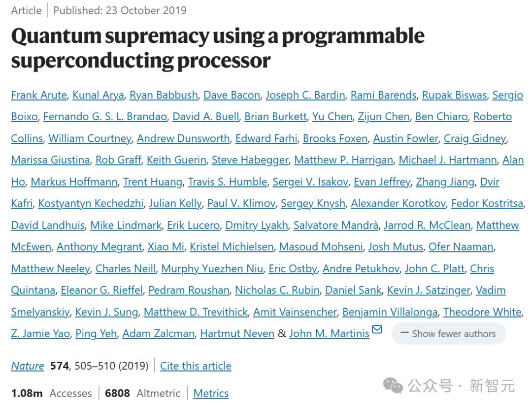 2019年那次研究,谷歌Nature论文表明,经典超算是需要1万年,才能完成53量子比特计算机,仅在200秒内就运行了RCS算法。