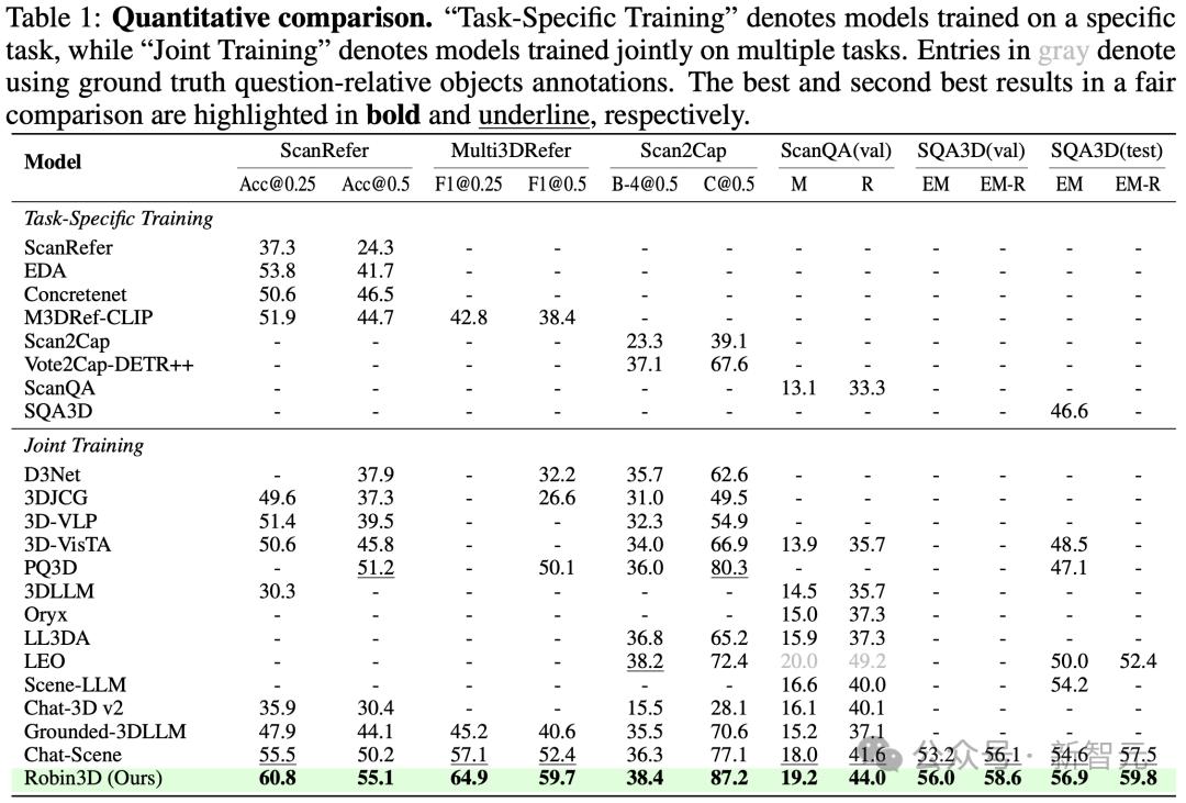 最终Robin3D在所有的3D场景多模态数据集上达到一致的SOTA,并且不需要特定任务的微调。
