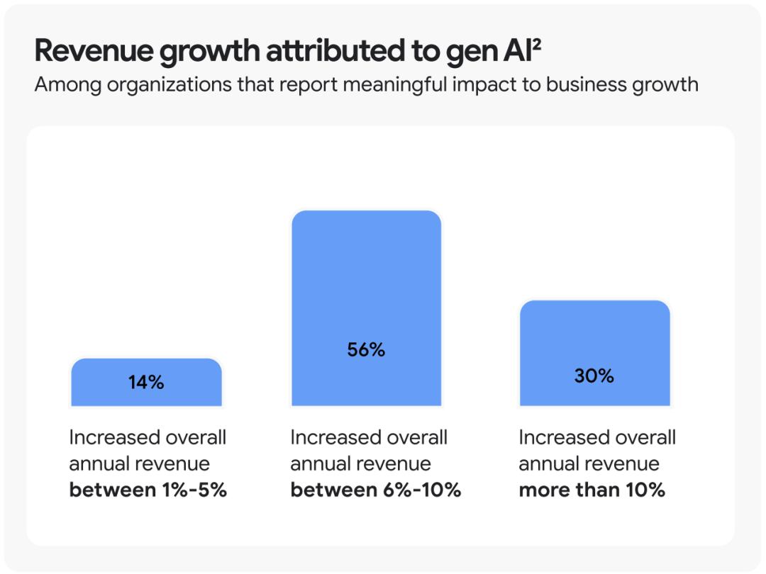 更令人振奋的是,43%的受访者表示,员工生产力至少提高了一倍,这表明新一代人工智能不仅可以实现任务自动化,还可以从根本上改变工作方式,带来显著的产出提升。