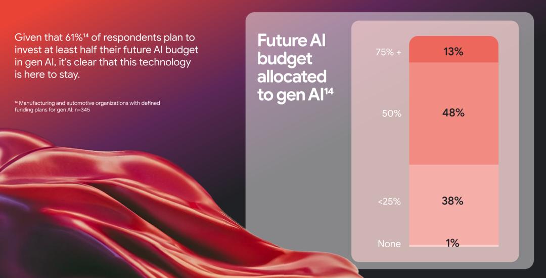 鉴于61%的受访者计划将至少一半的未来AI预算投入到生成式人工智能Gen AI领域,我们可以清晰地看到,这一技术势必将长期存在并发挥重要作用。