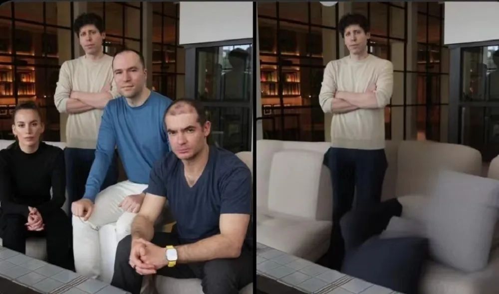 ▲穆拉蒂离职后,有网友用AI制作了一张今昔对比图,OpenAI核心人物似乎仅剩阿尔特曼了(图源:X平台)