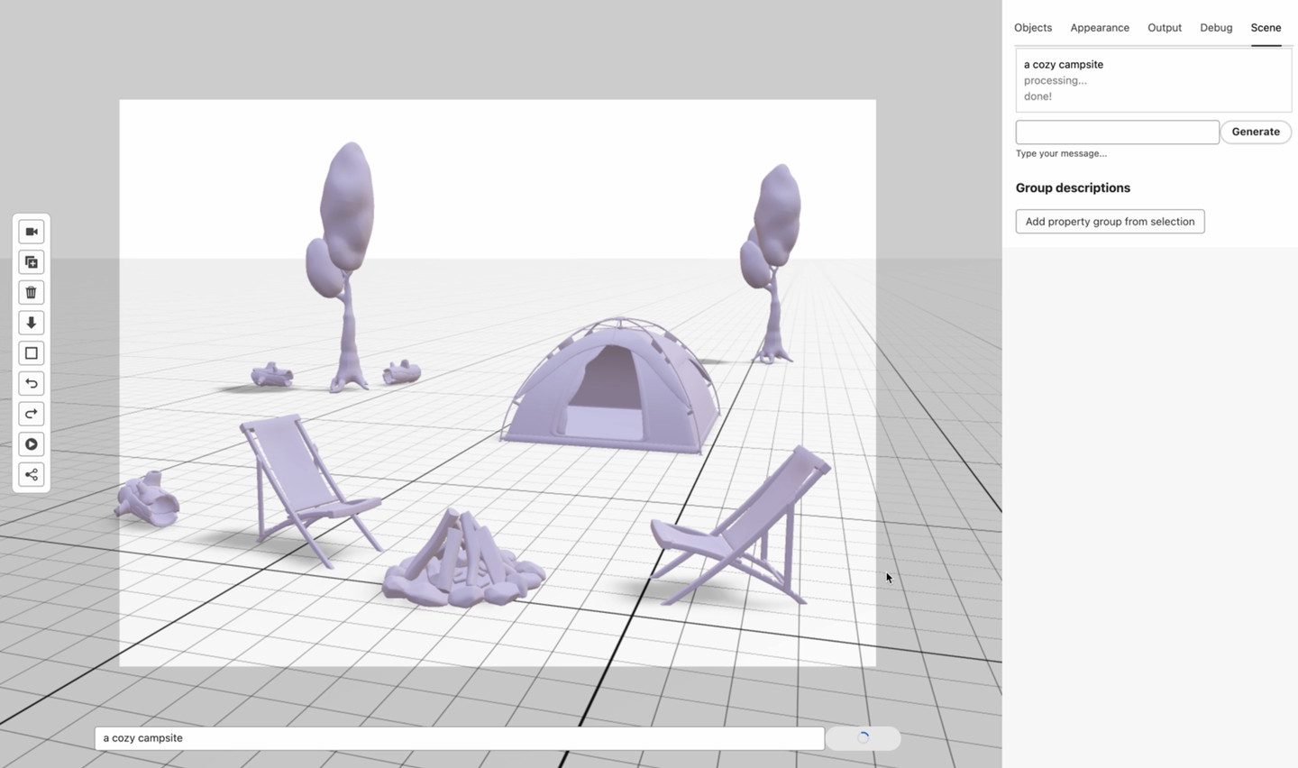 Project Scenic:该工具可让用户在使用 Firefly 模型生成图像时拥有更大的控制权。其能够生成一个完整的 3D 场景,用户可以自由添加、移动、调整场景中的物体大小,最终结果会根据 3D 场景生成相应的 2D 图像。
