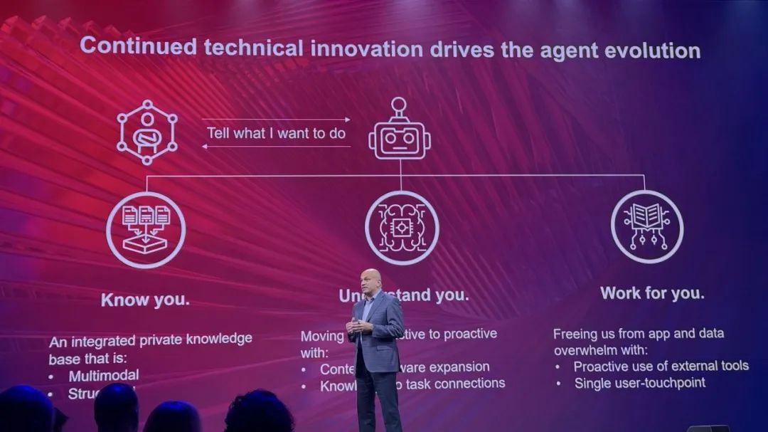 联想CTO特别提到,AI智能体会是下一个重要的AI发展趋势。AI智能体可以了解你、懂你、为你工作,从被动变为主动。
