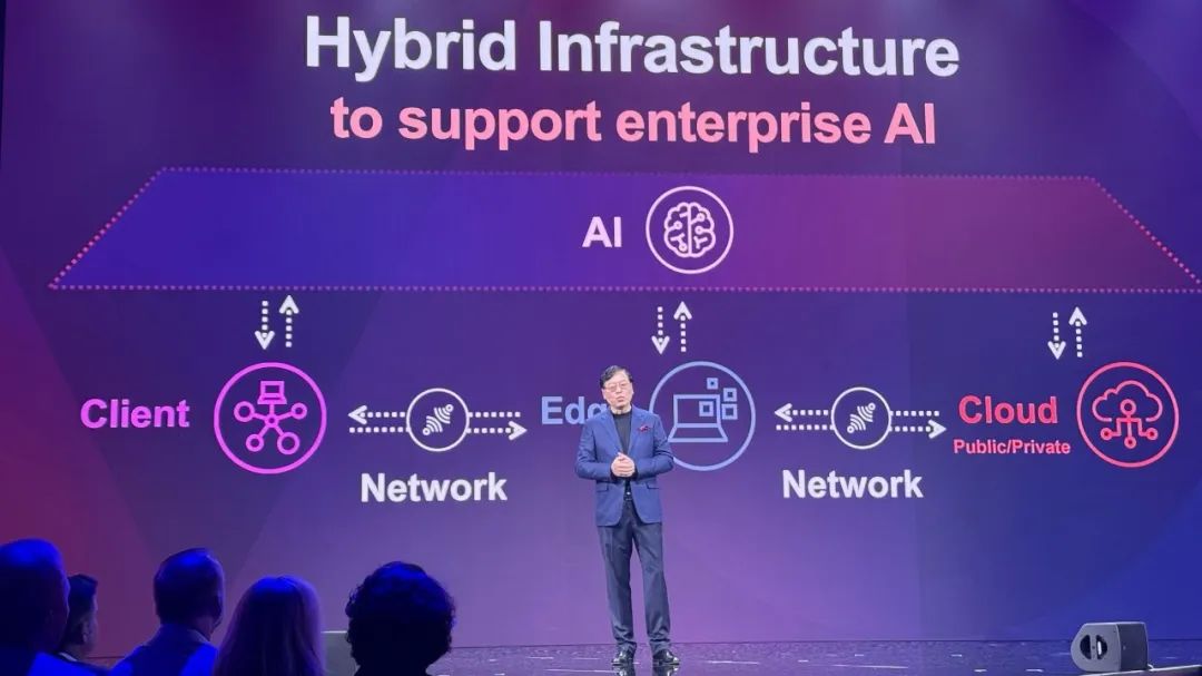 越来越多的企业数据正在被存储到私有云、边缘和终端设备上,而AI工作负载在其间的分布也更加均衡,这样“端-边-云-网”结合的基础设施方案,就是混合式基础设施解决方案(Hybrid infrastructure solutions)。