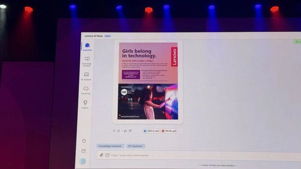在此次大会上,联想面向全球正式发布了联想AI Now——联想PC上的个人AI智能体。