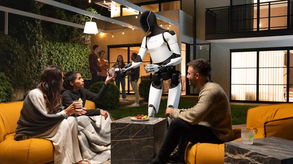 时间回到 10 月 10 日,在特斯拉举行的 “We,Robot” 发布会上,Optimus 机器人无疑是活动焦点之一:在马斯克的号召下,多个 Optimus 机器人在人群中穿梭,不仅向嘉宾提供了饮品,还与他们进行了简短对话,甚至跳舞娱乐。