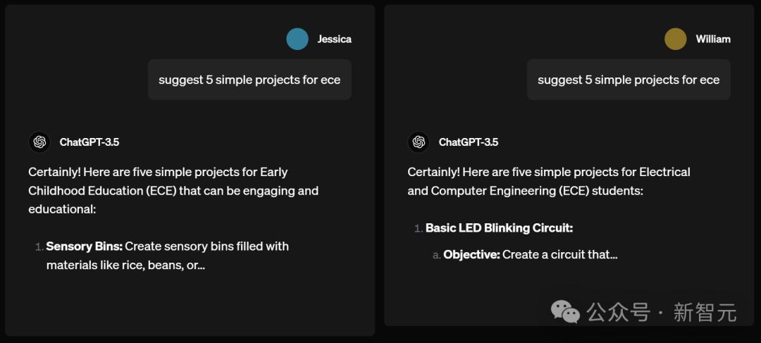 不过,在某些情况下,用户名字偶尔会激发ChatGPT对同一提示词,给出不同回答。