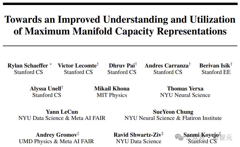 【导读】近日,来自斯坦福、MIT、纽约大学和Meta-FAIR等机构的研究人员,通过新的研究重新定义了最大流形容量表示法(MMCR)的可能性。
