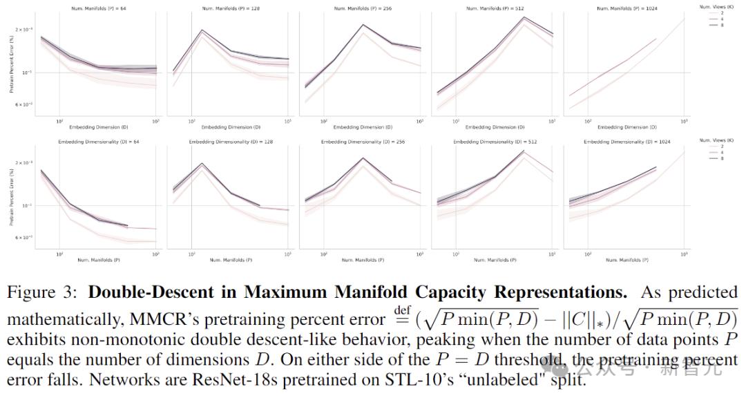 通过高维概率分析可知,预测最大流形容量表示的预训练损失,也应该在其预训练损失中表现出非单调双下降样行为。