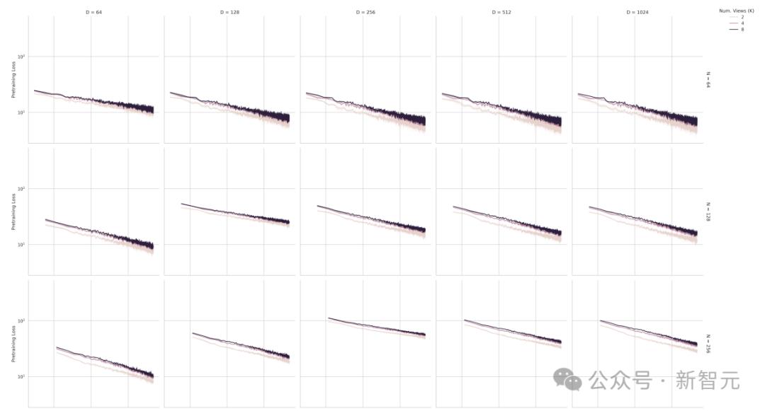 此外,研究人员还发现了计算上的scaling law,可以将预训练损失预测为梯度步长、批量大小、嵌入维度和视图数量的函数。