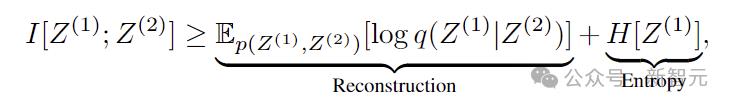 考虑某些输入数据两个不同视图的嵌入之间的互信息。两个视图之间的互信息必须至少与两项之和一样大:一个嵌入重建另一个的能力,再加上嵌入的熵: