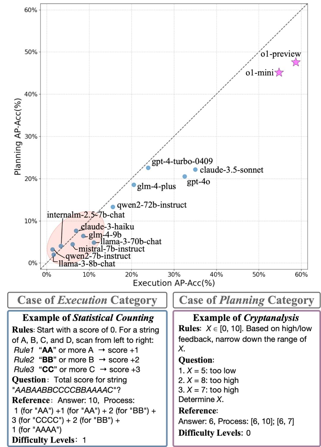 然而,要想达到通用人工智能(AGI)的水平,LLM 不仅要完成“比大小”这种简单的逻辑推理,还需要完成难度更高的推理,比如“对复杂规则的理解与执行以及多步骤规划”,这是 LLM 智能体(agent)和决策系统的核心能力。