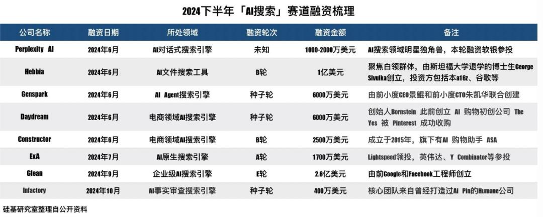 DayDream在今年6月完成了5000万美元的(约3.56亿人民币)种子轮融资,7月,Genspark也完成了6000万美元(约合4.35亿元人民币)的种子轮融资,估值达到了2.6亿美元,英伟达参投的一家AI搜索引擎公司Exa AI也获得了1700万美元的新一轮融资。
