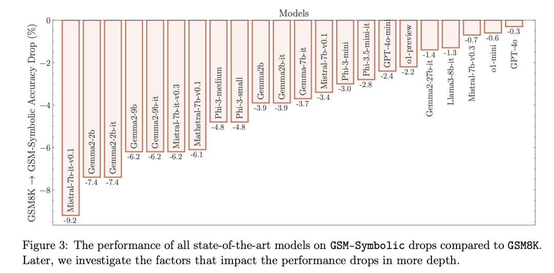 首先 ,网友对该论文的 o1 测试的结论提出质疑:根据结果,测试模型之一的 o1 更加稳健,仅下降了 15%,而其他模型则下降了 25-40%,这也与他们的论点相矛盾并削弱了他们的论点。“适当的做法可能是更彻底地重新审视主题和论文,但他们决定继续发布并将其作为附录添加进去。”