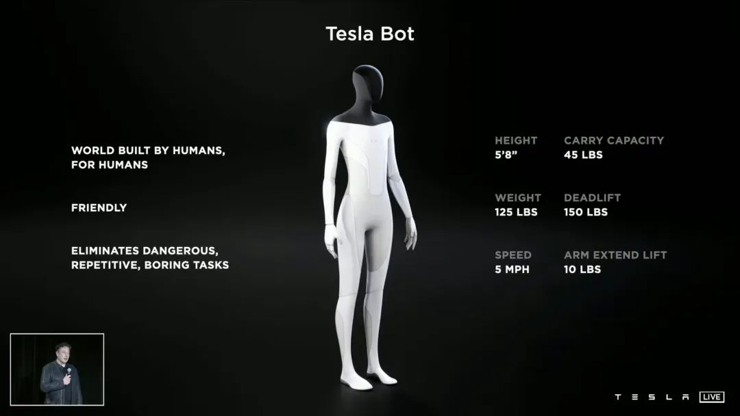 而在技术上,Tesla Bot 又是一次革新,车内已经成熟的电池、电机技术,广泛应用的 AI 芯片,二者技术复用度相当高,换句话说,成本大幅降低。