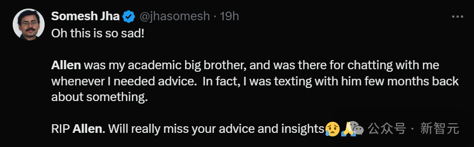「Allen,一路走好。真的很想念你的建议和洞察力。」