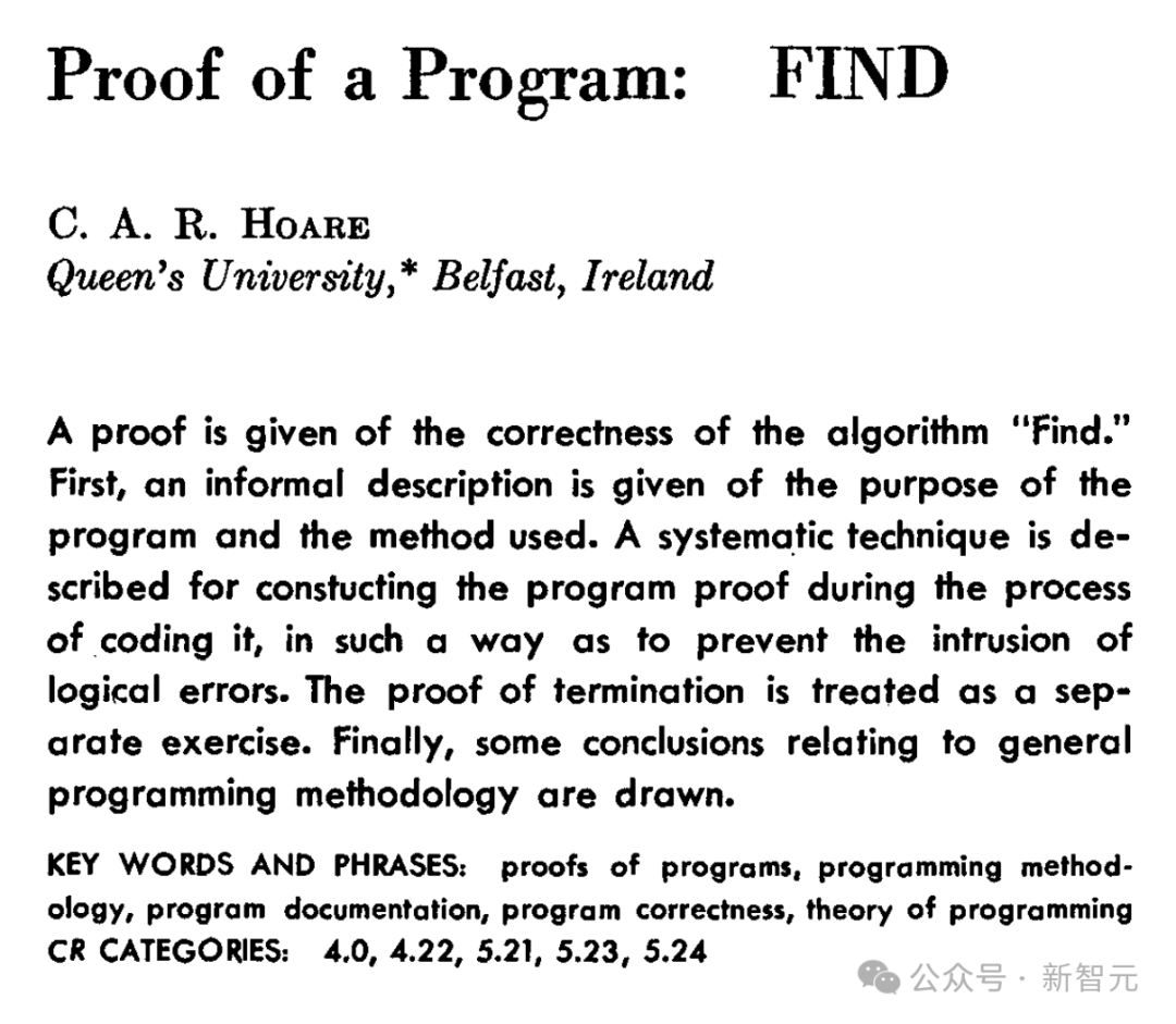并从 Tony Hoare 在 ACM 上发表的一篇题为「Proof of Program: Find」论文中受到了启发。