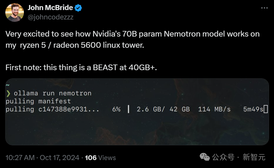 有网友表示,非常期待看到 Nemotron 70B 在自己的 Ryzen 5 / Radeon 5600 Linux 电脑上跑起来是什么样子。