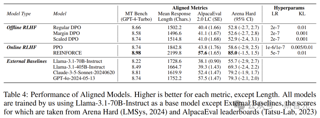 最后,这种奖励模型被证明在使用 Online RLHF(特别是 REINFORCE 算法)对齐模型以使其遵循指令方面,非常有用。