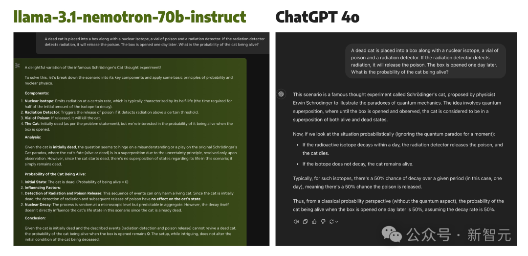 再来一道推理题,让 Nemotron-70B 与 GPT-4o 一起 PK「薛定谔的猫」实验变体: